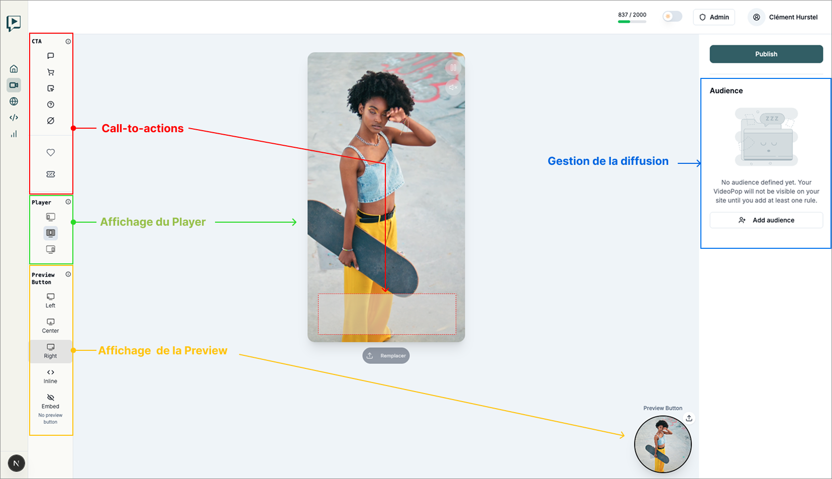 La préview est la pastille qui s’affiche en premier sur vos pages et qui incitent vos visiteurs à visualiser votre vidéopop.