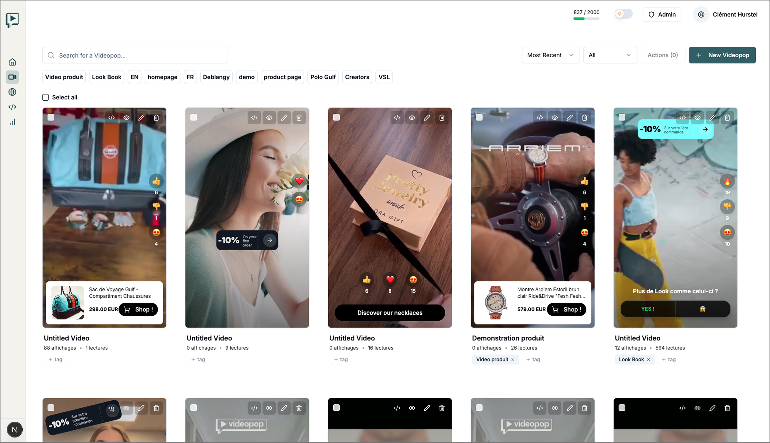 - Retrouvez toutes vos videopops dans la section “Videopops”.